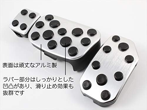【取付方法】・アクセルペダル:純正ペダルの上からそのまま被せる。 ・ブレーキペダル:純正ペダルカバーを取り外し、製品を被せる。 ・パーキングブレーキペダル:純正ペダルの上からそのまま被せる。 ※気温が低い時期はゴムが硬化します。ドライヤーなどで温めてから作業をすると取り付けやすくなります。