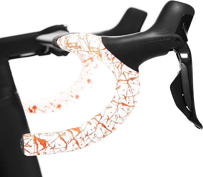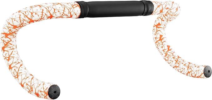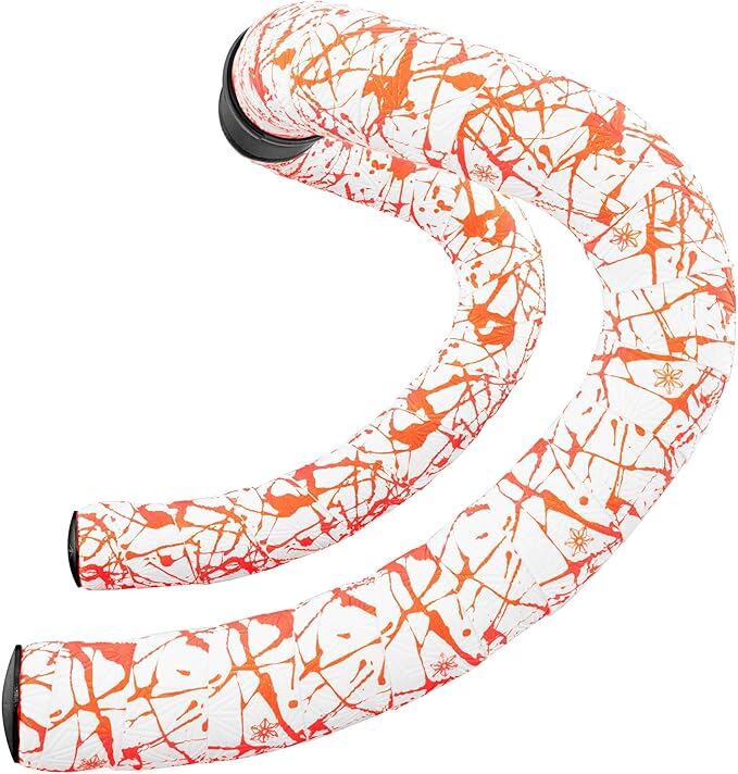 Supacaz Bartape - スーパースティッキークッシュ - スプラット - リミテッド- ホワイトとネオンオレンジ+ブラックスタープラグ - サイクリングハンドルバーテープ | KAZESHOP