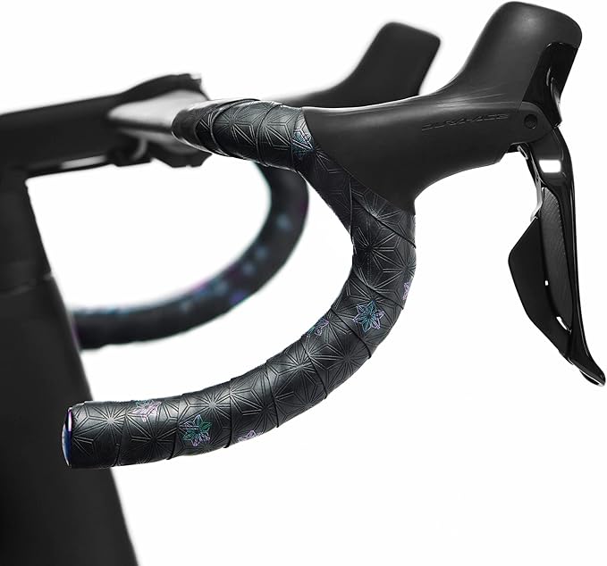 カラー:Oil Slick ・付属品:OilSlickカラーバーエンドキャップ、ハイエンドラバーテープ Super Sticky Kush Galaxy は、幾何学的なSupacazパターンが散りばめられたバーテープです。粘着性のある高度なポリウレタン使用により、グリップ性、 紫外線、気候、汗に強いのが特徴です。