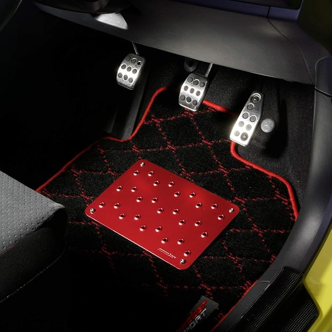 ペダル操作時、ヒールによる磨耗からフロアマットを守ります。2mm厚のアルミ材にバーリング加工を施し、強度の保持とヒールのグリップ確保を実現しました。