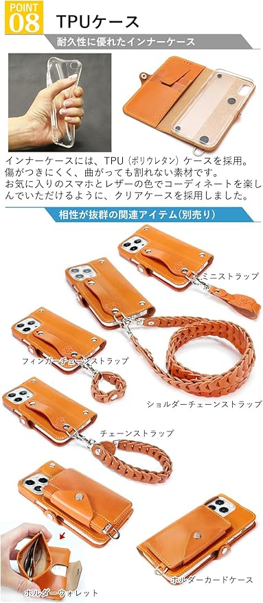 Ricky's Leather の集大成。通話・メール・インターネット・動画・撮影・収納といった様々な視点から、とにかく使いやすさとデザインを追求した Ricky's オリジナル手帳型ケース。