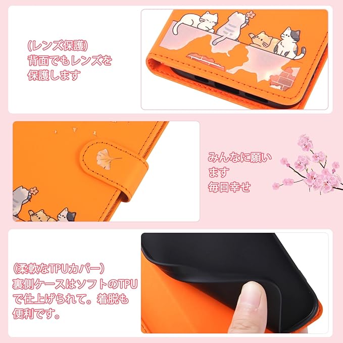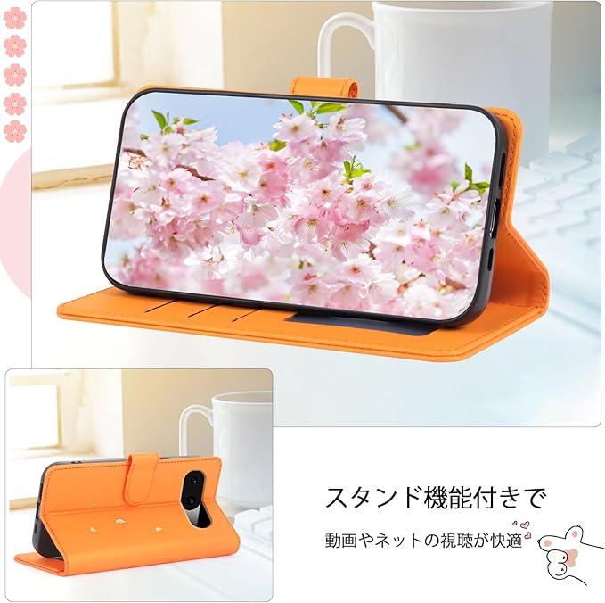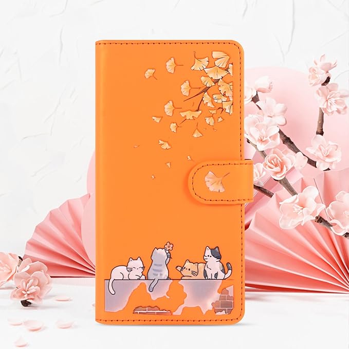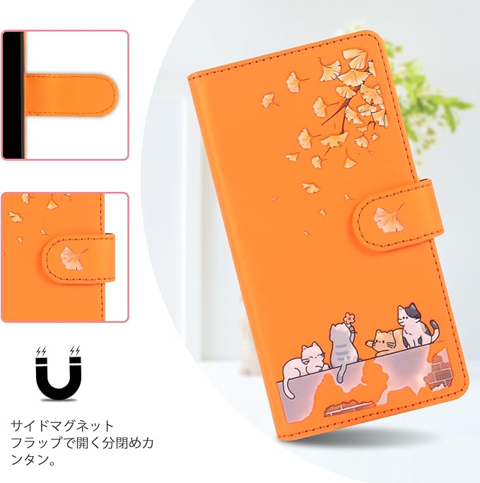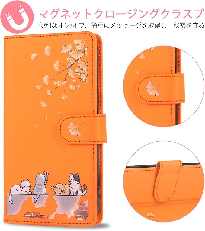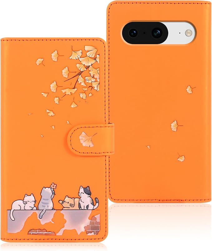 対応 Google Pixel 8A ケース 手帳型 グーグルピクセル8A ケース 手帳型 Pixel8Aケース 手帳型 かわいい猫 落ち葉 Googleピクセル8A ケース カード収納 軽量 グーグル ピクセル 8A ケース GooglePixel8Aケース Google Pixel 8A 手帳型ケース Pixel 8A カバー スタンド機能 全方位保護 財布型 -オレンジ | KAZESHOP