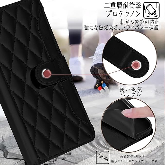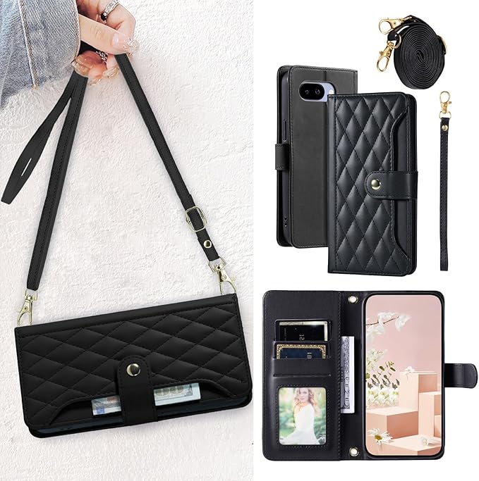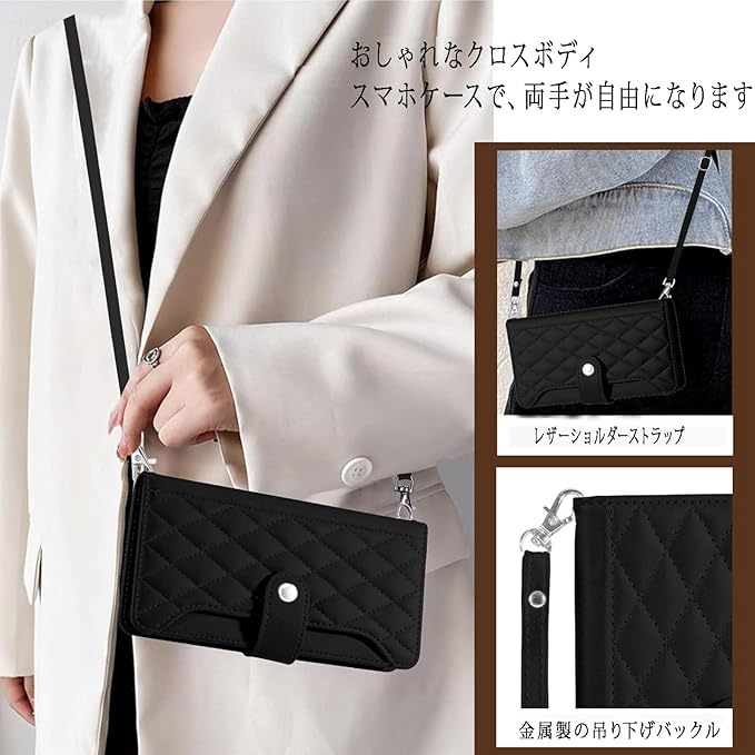 Google Pixel 9A ケース 手帳型 ピクセル9a ケース 手帳型 グーグルピクセル9a 財布型 ショルダー ストラップ カード収納 pixe9aケース スマホケース googleピクセル9a Googlepixel9a 携帯ケース 磁気スナップボタン式 肩掛け スタンド機能 pixe9a カバー ぐーくるぴくせる 9aひし形柄 高级PUレザー おしゃれ 全面保護 耐衝撃 -ブラック | KAZESHOP