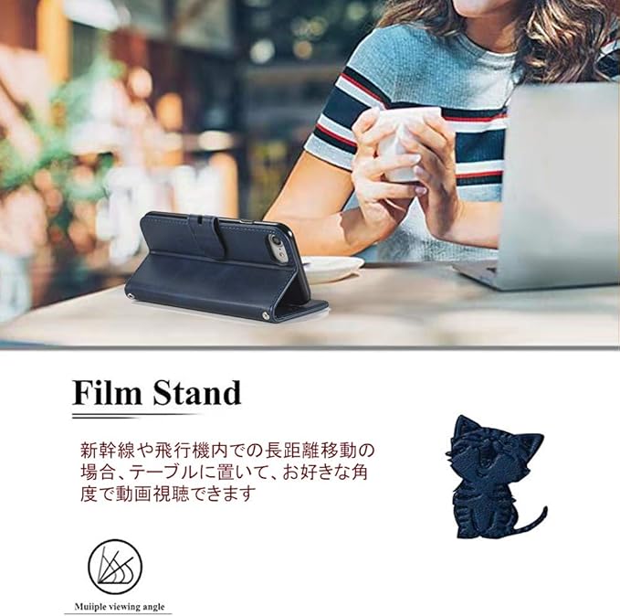 ❹【スマイル猫ちゃんのデザインと上質な素材】型押しの可愛い猫のモチーフと上品なレザーの組み合わせるケースであり、高級感ある色合いでちょっぴり大人なスマホケース。裏側ケースはソフトのtpuで仕上げられて、着脱も便利です。ストラップも付いて、日常性型にもっと便利になります。