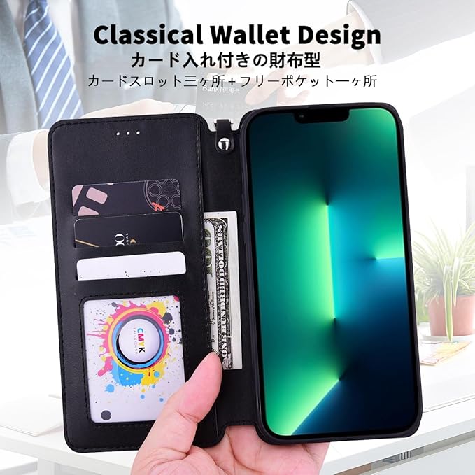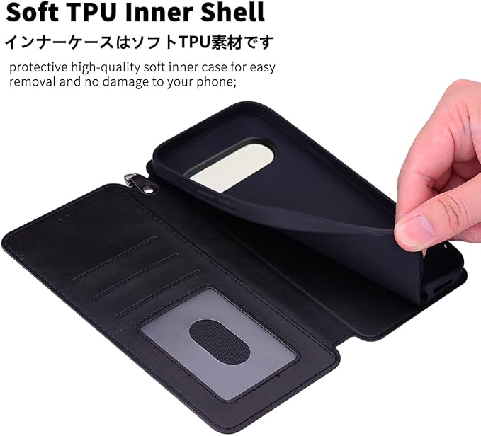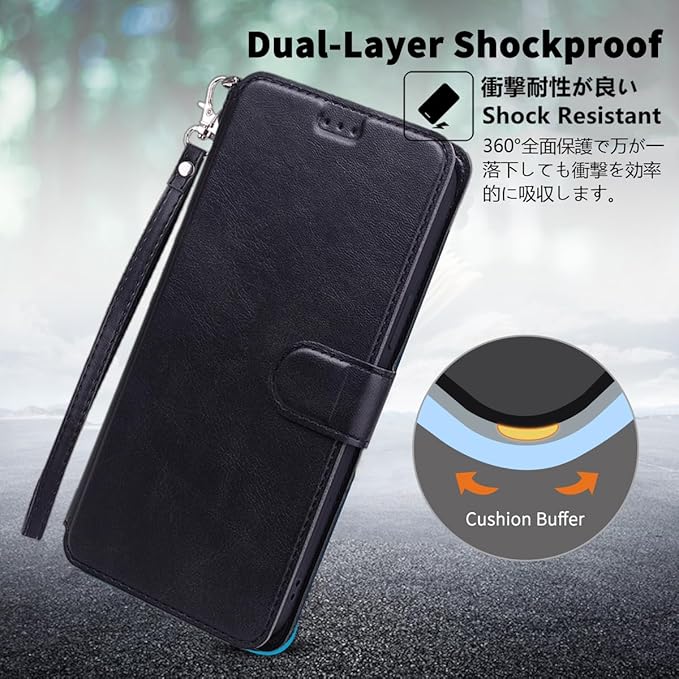 【ポイント1:高品質PUレザー】薄型で軽量化のスマホケースです。外側のカバーには手触りがとても良い高品質の合成レザーを採用します。内側のスマホホルダーは柔軟なTPU素材を採用したソフトケースとなります。汚れにくくて指紋防止の特徴を持っております。耐衝撃の二重構造で落下の衝撃をうまく吸収します、本体をしっかりと守ります。