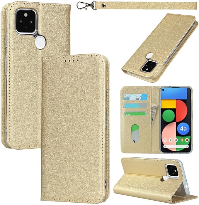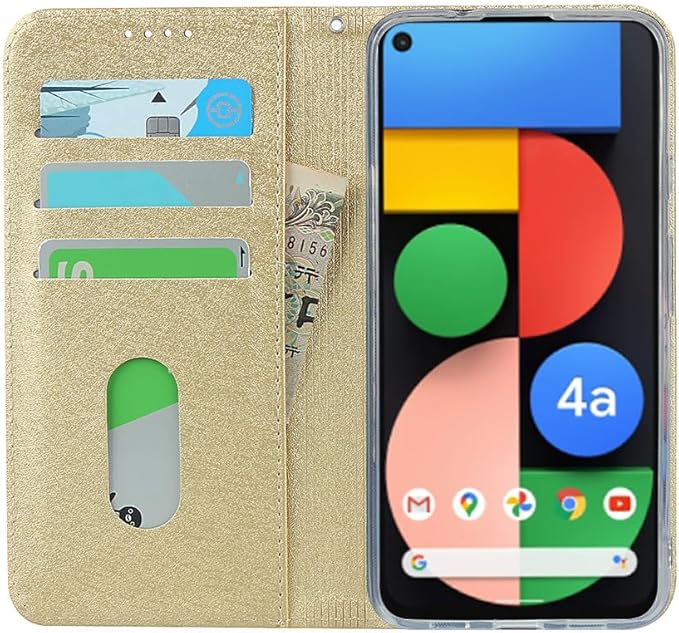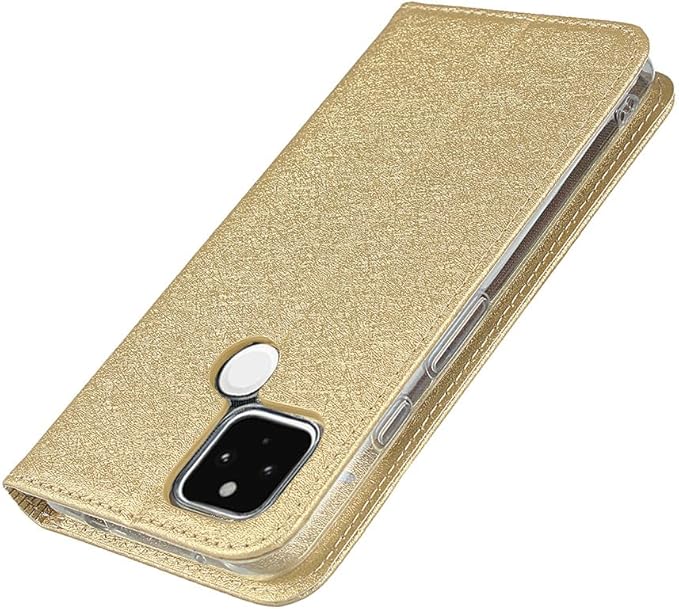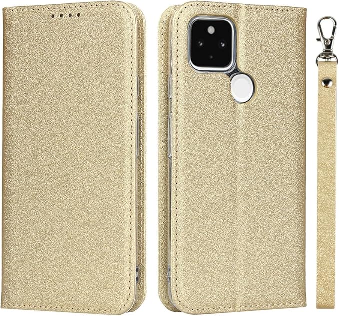 対応 Google pixel 4a 5g ピクセル4a 5g ケース カバー スマホケース 手帳型 カードスロット、キックスタンド 蚕糸紋レザー(ゴールド)
