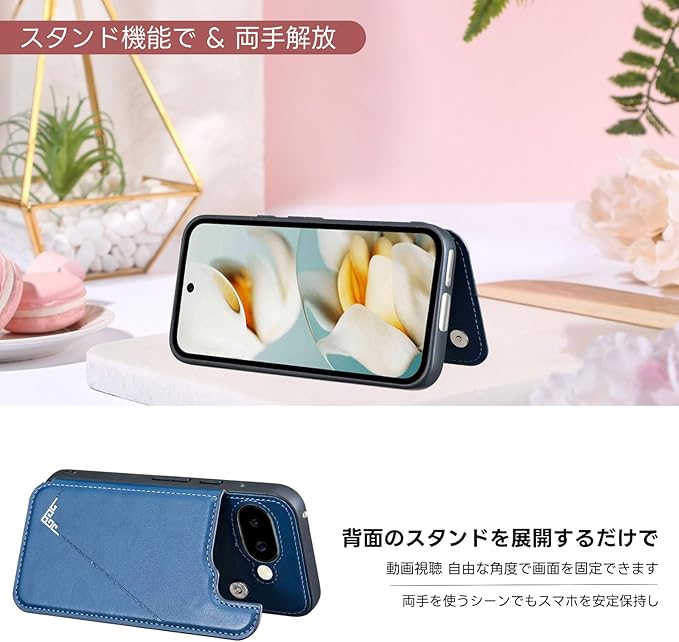【Suumii】 手帳型 Google Pixel 9A 用 背面 手帳 カードケース ランヤード付 背面カバーグーグルピクセル9a(紺) スマホケース サイドマグネット カード収納 横置き機能 PUレザー 財布型 携帯カバー GOOGLE9A濃紺 | KAZESHOP