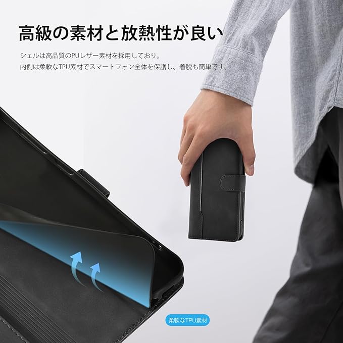 【上質な合成皮革】: 外:厳選された高品質PU革で丁寧な縫製プロセスを施し、手触りが優しくても、色合いに相性良いフック式のストラップが同梱販売。内:柔軟性が良いTPU材質、放熱性が良、軽量で耐衝撃性に優れ、変形しにくくまた、取り外しが簡単で、スマホ本体への損傷の心配ありません。