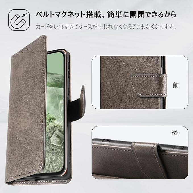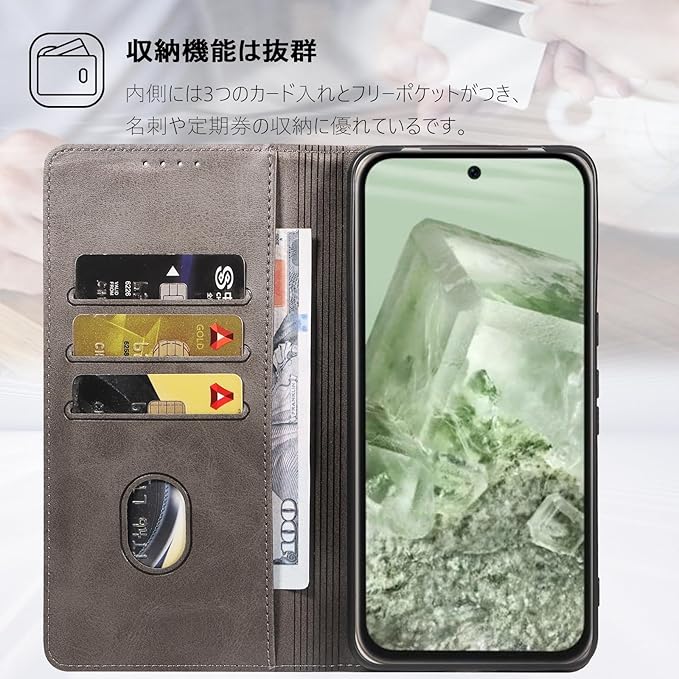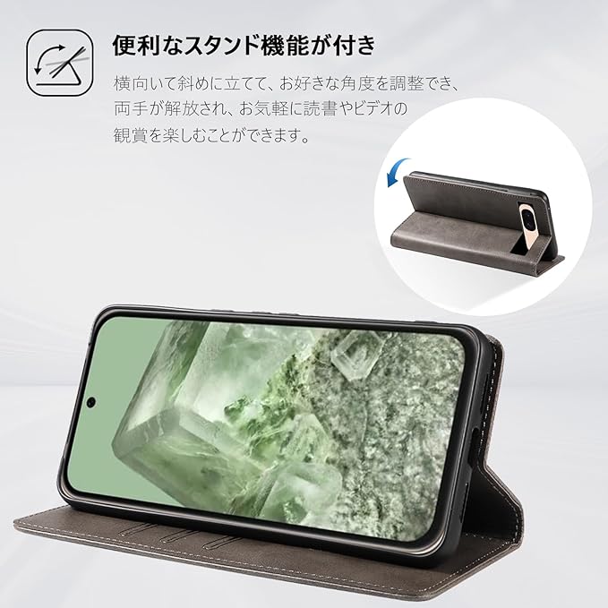 【google pixel 8a 用 ケース 手帳型】グーグルピクセル8a用 ケース 手帳型 カードポケット収納 グーグルピクセル8a 用 スマホケース 耐衝撃 全面保護 Google Pixel 8a用 カバー 横置きスタンド機能 googleピクセル8a用 ケース 内蔵マグネット スマホケース google pixel 8a用 落下防止【LEERBAN】6.1インチ(グレー) | KAZESHOP