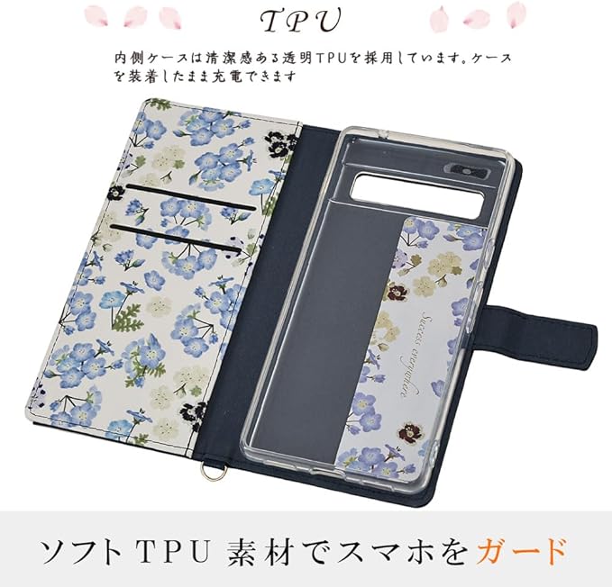 お花が可愛い手帳型ケース。