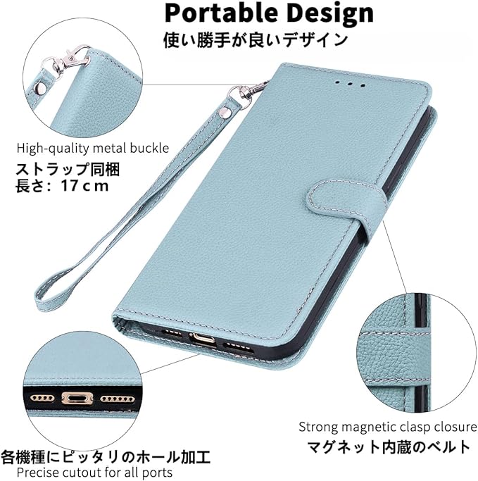 【特徴1:高品質PUレザー】軽量化のスマホケースです。外側カバーには滑り止めのライチ模様のPUレザーを採用します。内側のホルダーは柔軟なTPU素材を採用したソフトケースです。汚れにくくて指紋防止の特徴を持っております。耐衝撃の二重構造で落下の衝撃をうまく吸収します、本体をしっかりと守ります。