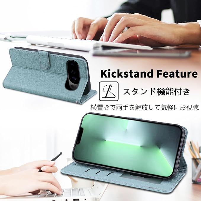 Google Pixel 10 ケース 手帳型 Pixel10pro 通用 【 Cobeimisr カードケース 一枚同梱】 グーグル ピクセル 10 Pro au Pixel10 docomo ピクセル10プロ SIMフリー 楽天モバイル ピクセル10 SoftBank カバー GooglePixel10 手帳 適用 case ライチ紋 軽量 カード ストラップ スマホケース ライト ブルー | KAZESHOP