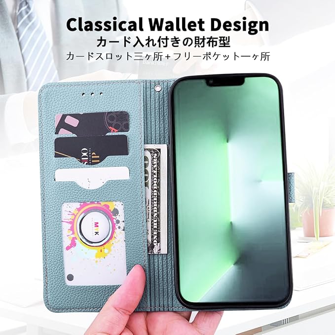 【特徴4:カード入れ付き】窓口式のカード収納とフリーポケットも装備しております。ちょっとした外出する際に、財布が無くても手帳型ケースだけで十分です。内蔵マグネットのベルトなのでピタッと閉まります。数多くのカードを入れてもしっかりとカバーできます、お気楽に持ち歩けることができます。