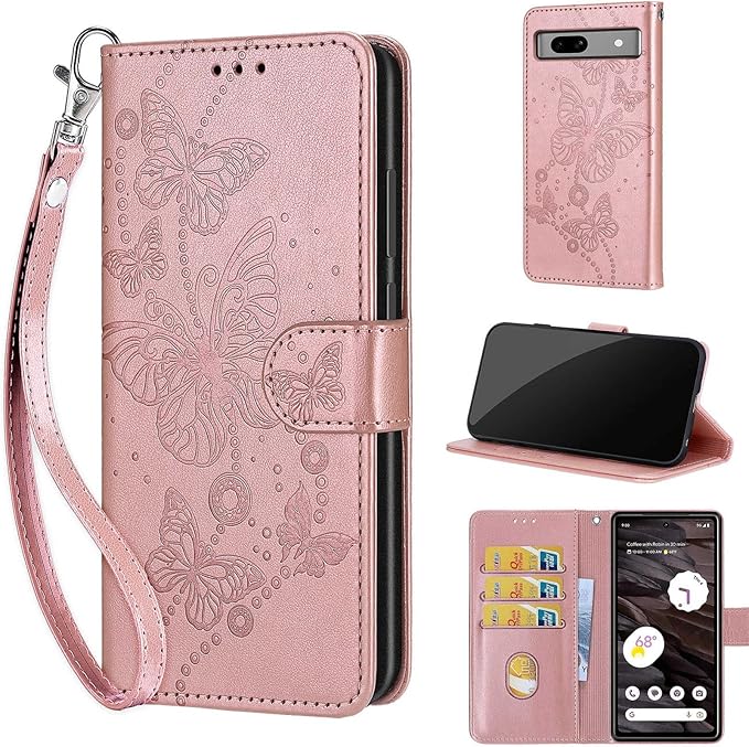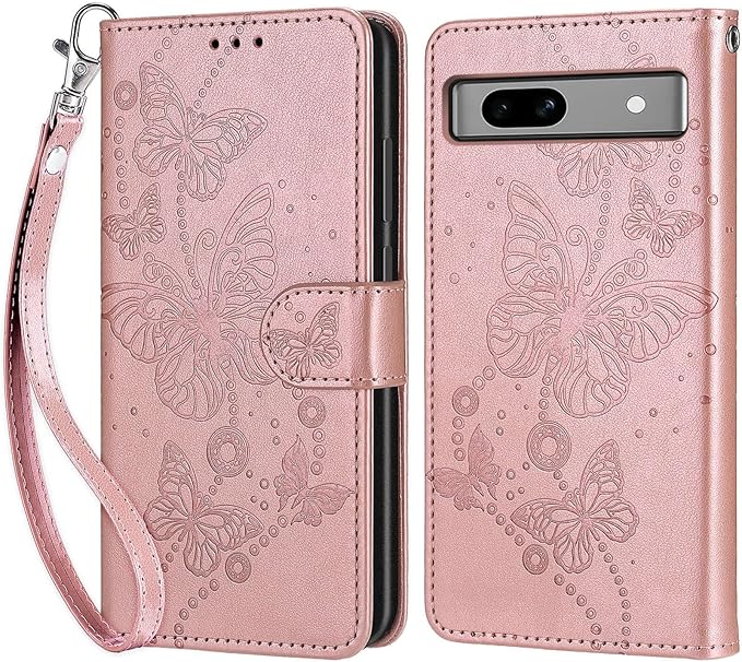 Google Pixel 7a ケース 手帳型 対応 Pixel 7a 財布型 携帯カバー Pixel7aスマホケース 高级PUレザー 耐衝撃 耐摩擦 全面保護 ホルダーバンプパタカード収納 軽量 手触りが良い 人気上品な シンプル気質 ギフト ローズゴールドの蝶 | KAZESHOP