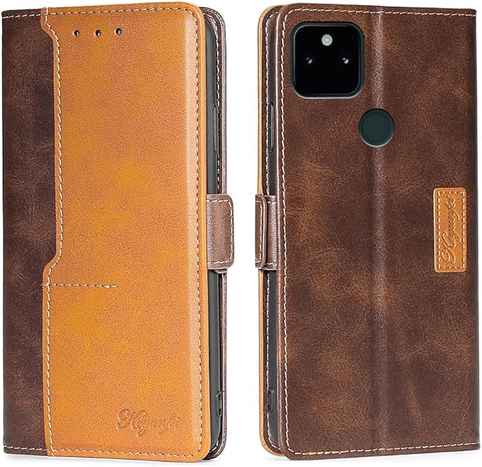 For Google Pixel 5A 5G と互換性がある ケース 手帳型 マグネット式スタンド機能 カード収納 軽量 落下防止 衝撃吸収 全面保護 財布型 折り畳み式 横置き機能 携帯カバー Google Pixel 5A 5G と互換性がある スマホケース (ブラウン) | KAZESHOP