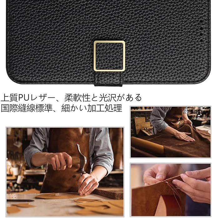 【高級感がある財布型ケース】見た目やデザインともすごく高級感が溢れている。しっかりとした作り、縫製・質感・手触りにも優れています。精密なデザインで、装着状態でも電源ボタン、音量ボタン、コネクター等が問題なく利用できます。ギフトとしてもおすすめいたします。