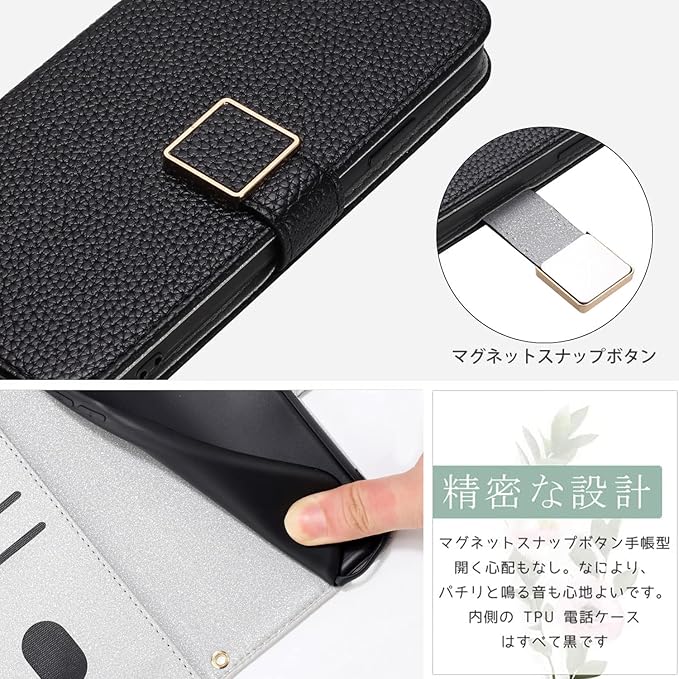 【カード収納とスタンド機能】ケース動画視聴に便利なスタンド機能が付き、横向いて斜めに立てて、お好きな角度を調整でき、両手が解放され、お気軽に読書やビデオの観賞を楽しむことができます。内側には3つのカード入れとフリーポケットがつき、名刺や定期券の収納に優れている 携帯カバーです。