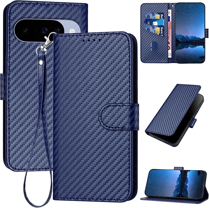 Google Pixel 10 用 ケース 手帳型 Google Pixel 10 Pro スマホケース グーグル ピクセル10 手帳型ケース ピクセル10pro 携帯カバー 炭素繊維ブレイドスタイル 肌触り良い 指紋防止 マグネット開閉式 スタンド機能 全面保護 財布型 軽量 - ブルー | KAZESHOP