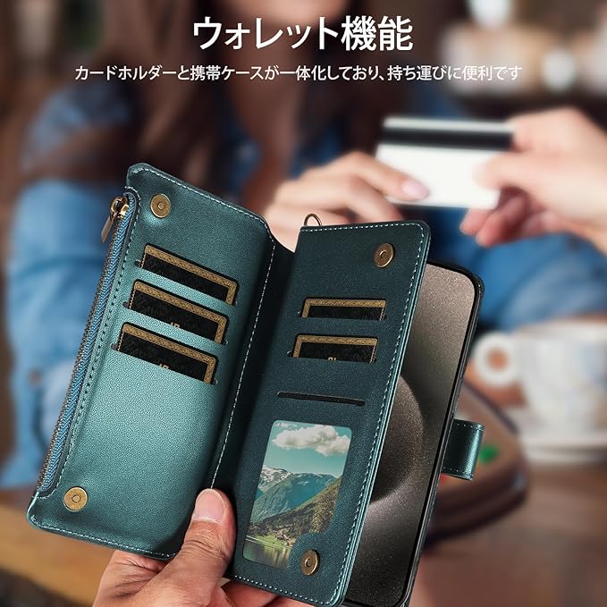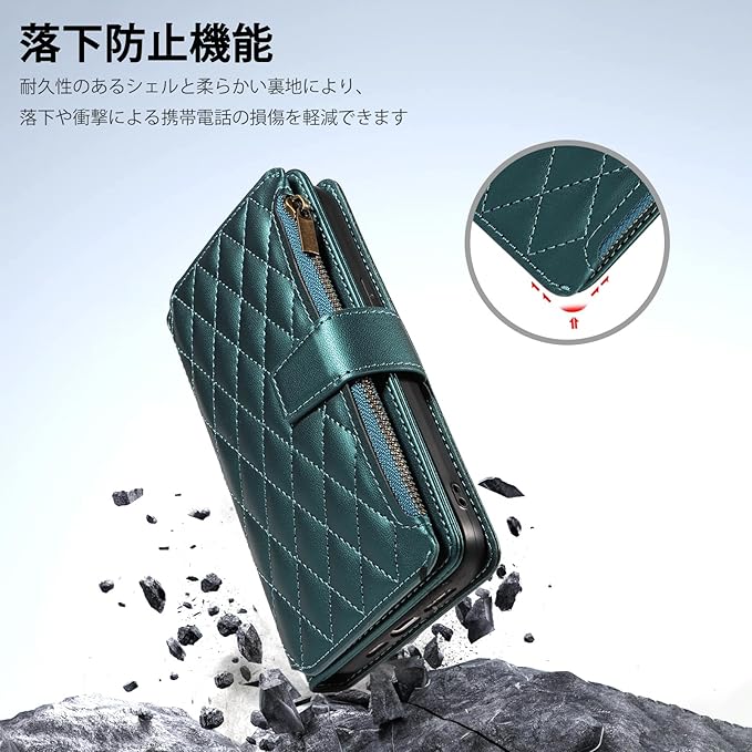 FOR pixel 9a ケース pixel9a ケース 手帳型 横置きスタンド機能 カード収納 ジップ付き小銭入れ 耐衝撃 耐摩擦 全面保護 マグネット式 財布型 おしゃれ ファスナー型 小銭入れーグリーン | KAZESHOP