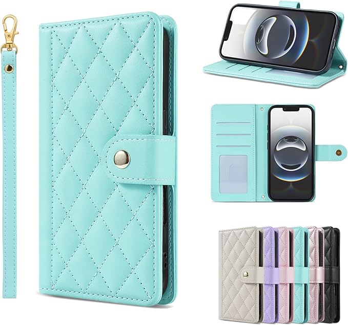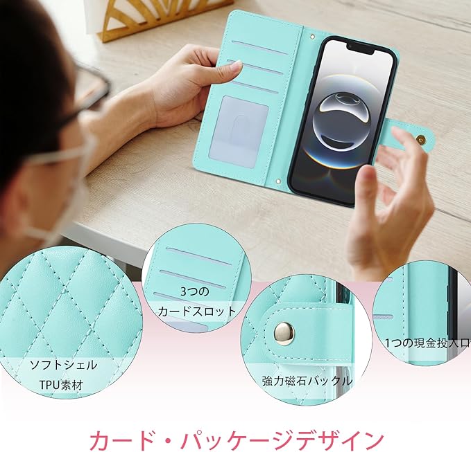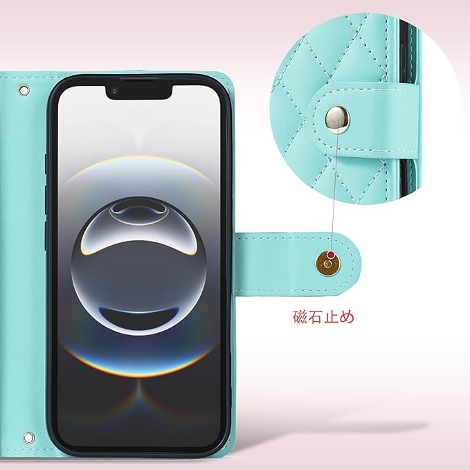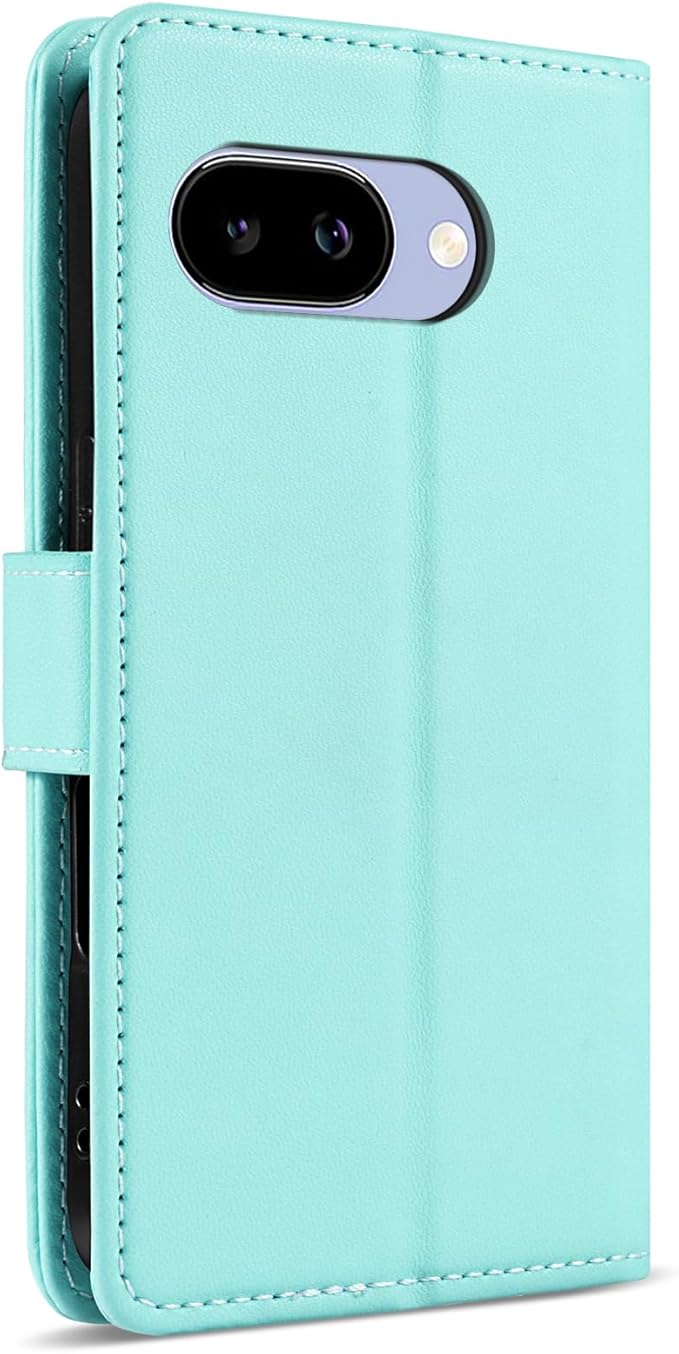 Google Pixel 9a 対応 手帳型ケース Pixel 9a ケース マグネット開閉式 カード 3 枚収納&スタンド機能付き 画面とレンズの全面保護 PU レザー 菱形デザイン (ストラップ付属) (ミントブルー) | KAZESHOP