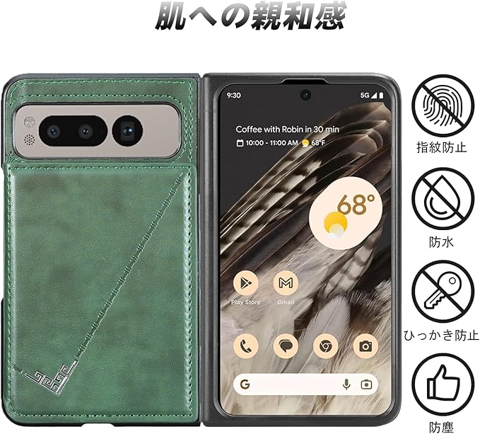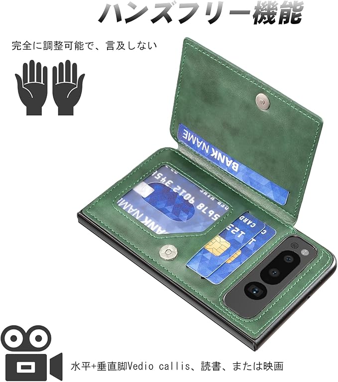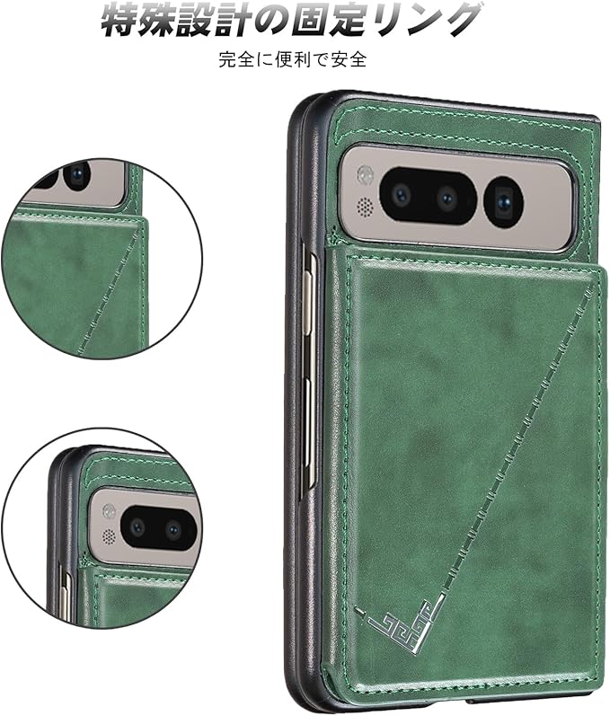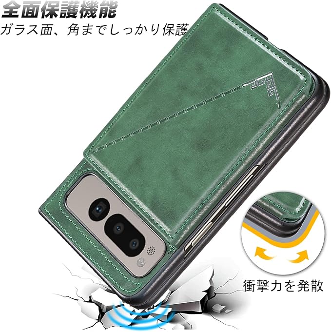 【 Antimam 】背面カード 手帳型ケース 対応 Google Pixel fold スマホバックカバー ( ダークグリーン )手作り お洒落シンプル 軽量 耐久性 カード収納 スタンド機能付き 財布型 落下防止 グーグル ピクセル フォールド スマホ ケースPixel fold 5g GREEN | KAZESHOP