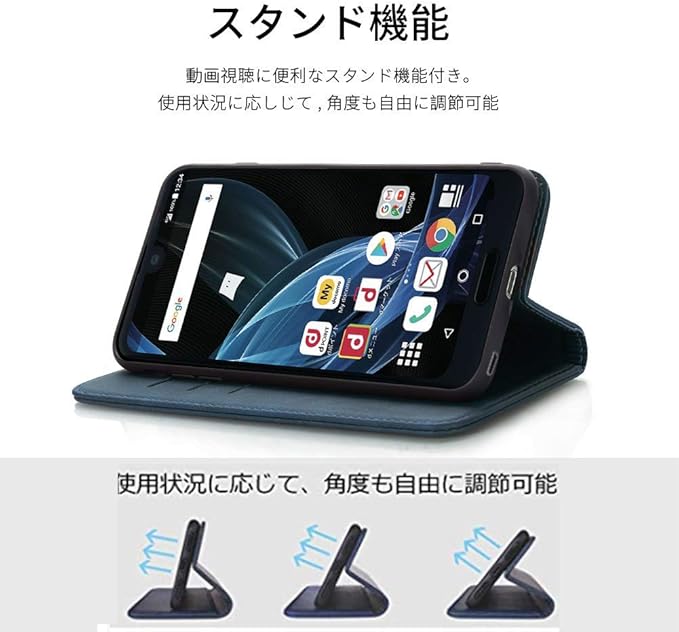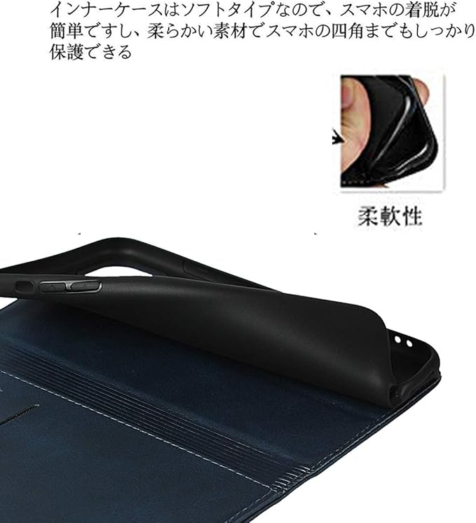 【磁性機能】内蔵マグネット機能搭載の手帳型ケースなので、留め具の邪魔無し、滑り防止の素材を採用され、とてもシンプルな感じで、しかも持ち易く、使い勝手がよいのです。