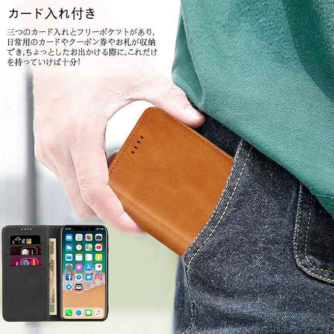 【高質PU皮革+TPU】レザーケースは、レトロの表面(高品質のPUレザー)+優しい裏面(柔軟なTPUカバー)と組み合わせ、衝撃吸収機能あり、プレミアムトップグレイン本革製の精密で、質感、強さ、キャラクターなどが厳選されています。