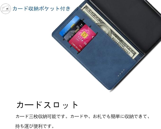 【収納ポケット】このカバーケースは、カードケースに3つのカードスロット、お金や追加カード用のサイドポケット、効果的でスタイリッシュな磁気ロックデザインのセキュリティ機能を備えています。 車券、名刺に便利なカードスロット、小銭など挿入可能サイドポケット付き、ちょっとしたお出かけにもこれ一つでOK!