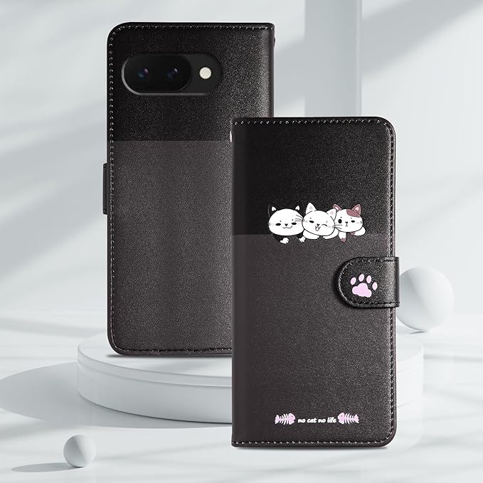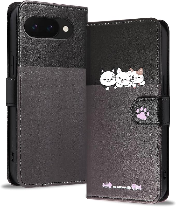 対応 Google Pixel 9A ケース 手帳型 かわいい猫 グーグルピクセル9a ケース 手帳型 財布型 Google pixel 9a スマホケース Googleピクセル9aケース TPU素材 全面保護 カード収納 pixel9a ケース可愛い スタンド機能 6.3インチ 手触りが良い 耐衝撃 -ダークグレー | KAZESHOP