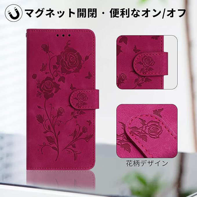 1.優れた素材:スマホケースの外側は高品質なPUレザーを使用しており、手触りがよく、耐摩耗性に優れ、指紋がつきにくくなっています。2.フリップカバーデザイン:ケース前面のマグネットがケースを固定し、不意に開くのを防ぎます。3. スタンド機能: スマホケースはスタンド機能を兼ね備えており、お好みの角度に簡単に調節することができます。 4.花柄デザイン:この携帯電話ケースは、表面にバラと蝶のパターンが付属しており、シンプルでカジュアル、誰にでも適しています。