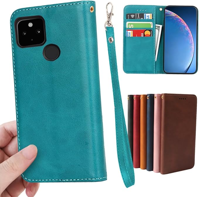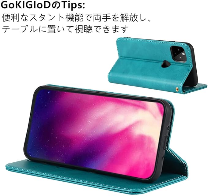 適用 Google Pixel 4A 5G ケース 手帳型 PUレザー ストラップ 同梱 カード収納 スタンド機能 耐衝撃 グーグル ピクセル4A5G スマホケース 手帳 Pixel4A5g case カバー 財布型 内蔵マグネット 弱磁 ストラップホール 携帯カバー レトロ ターコイズ | KAZESHOP