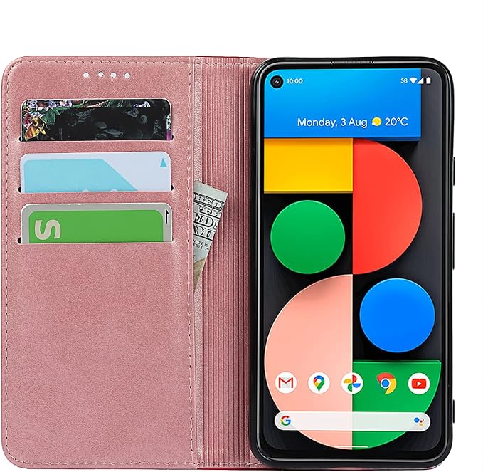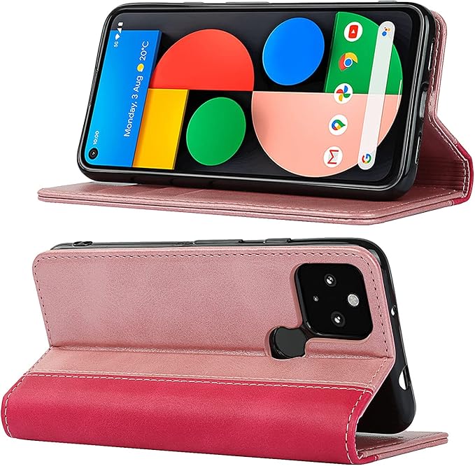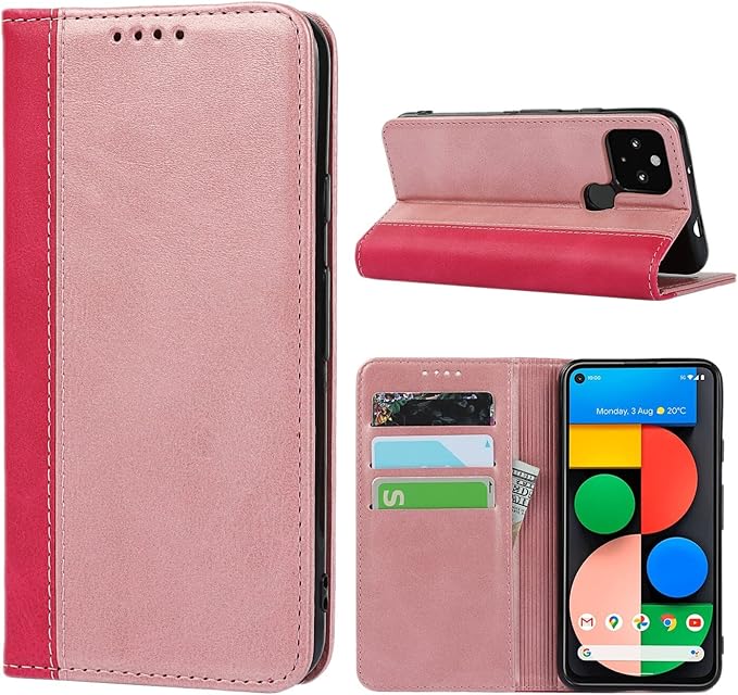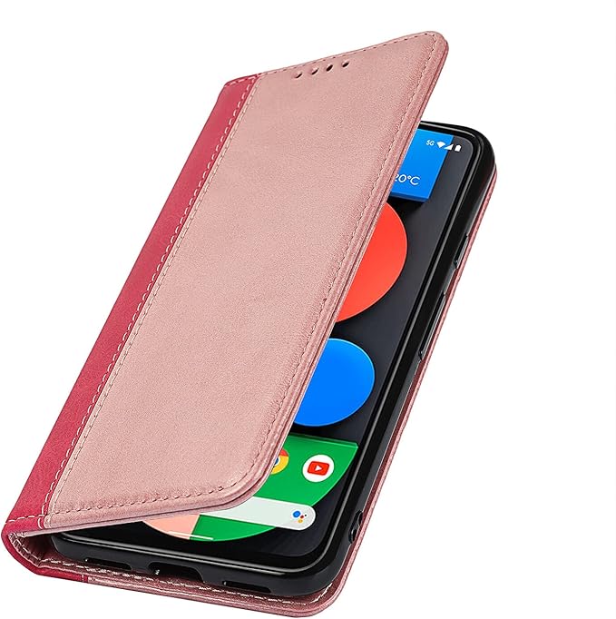 Pelanty for Pixel 4A 5G ケース手帳型 for Google pixel4a 5G 6.2'' 携帯カバー 財布カード入れ 横置きスタンド機能 内蔵マグネット 合成皮革+TPU グーグルピクセル4A 5G スマホケース 耐衝撃 2色組合せ ピンク X ローズレッド | KAZESHOP