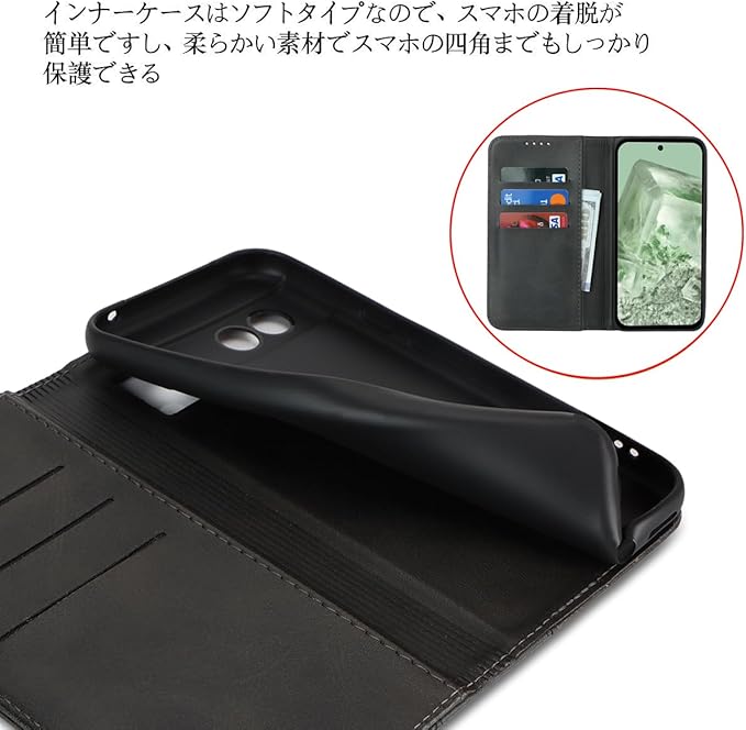 Google pixel 8A ケース 手帳型 適用 pixel8A ケース 手帳 au docomo ドコモ SIMフリー softbank 全対応 ピクセル 8A グーグル ピクセル8A pixel8A カバー pixel8Aケース 財布型 適用 case iCoverCase マグネット カードケース スマホケース 携帯カバー カード入れ スタンド 落ち着いた色 レトロ ブラック | KAZESHOP