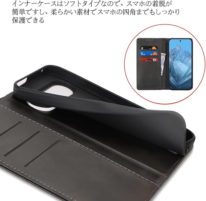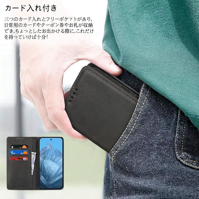 Google pixel 9 ケース 手帳型 通用 pixel 9 pro 耐衝撃 pixel9 pixel9pro ケース 手帳 docomo au SIMフリー softbank 全対応 ピクセル9 カバー グーグル ピクセル9pro カバー ピクセル9プロ 適用 case iCoverCase マグネット カードケース スマホケース カード入れ スタンド 落ち着いた色 レトロ ブラック | KAZESHOP