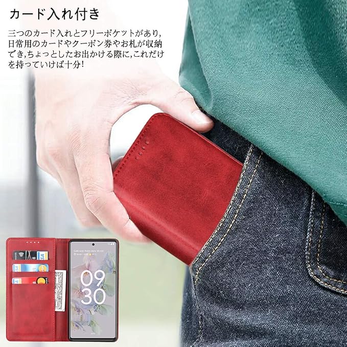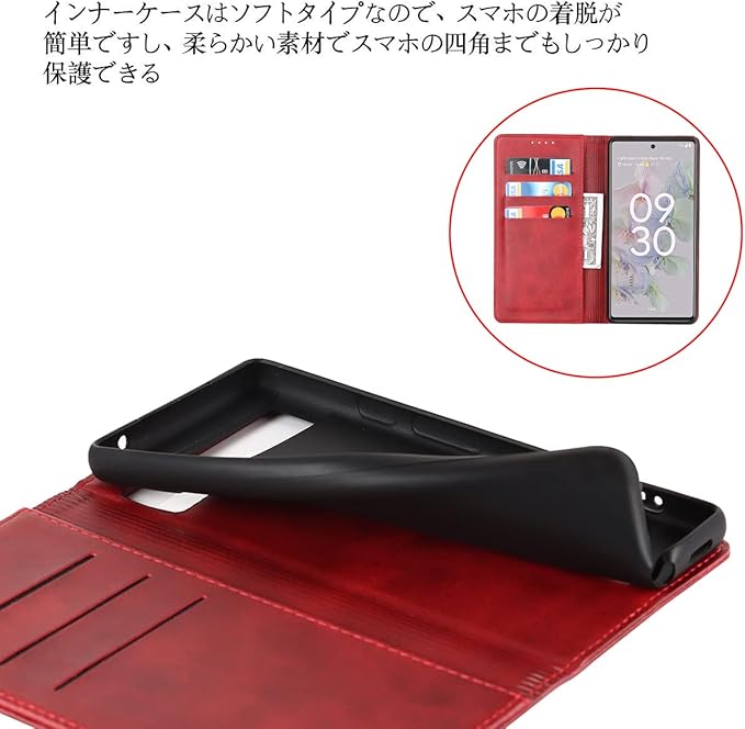 Google用 pixel 6A ケース 手帳型 pixel6A ケース 手帳型 au SIMフリー softbank全対応 ピクセル 6A カバー グーグル ピクセル6A カバー pixel6A スマホケース 手帳型 カバー pixel6Aケース 財布型 適用 case 【iCoverCase】 合成皮革 内蔵マグネット ケース 手帳型 カードケース スマホケース 携帯カバー カード入れ スタンド機能 落ち着いた色 レトロ レッド | KAZESHOP