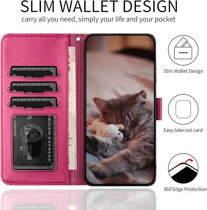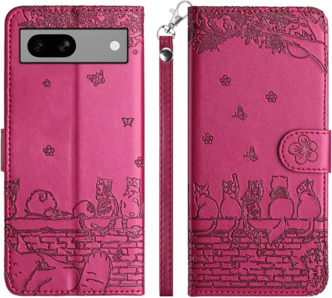 対応 Google Pixel 8A ケース 手帳型 可愛い 猫柄 グーグル ピクセル 8A 携帯カバー 蝶の花柄 スマホケース おしゃれ カード入れ 財布型 Pixel 8A カバー 動物柄 カード収納 スタンド機能 軽量 便利 内蔵マグネット式 紫赤 純色シンプルデザイン - Violet Red | KAZESHOP
