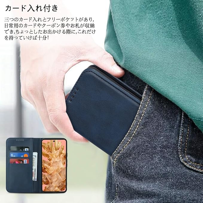 Google用 pixel8 ケース 手帳型 au SIMフリー softbank 全対応 ピクセル8 カバー グーグル ピクセル8 スマホケース 手帳型 カバー pixel8ケース 財布型 適用 case iCoverCase マグネット カードケース 携帯カバー カード入れ スタンド 落ち着いた色 レトロ ネイビー | KAZESHOP