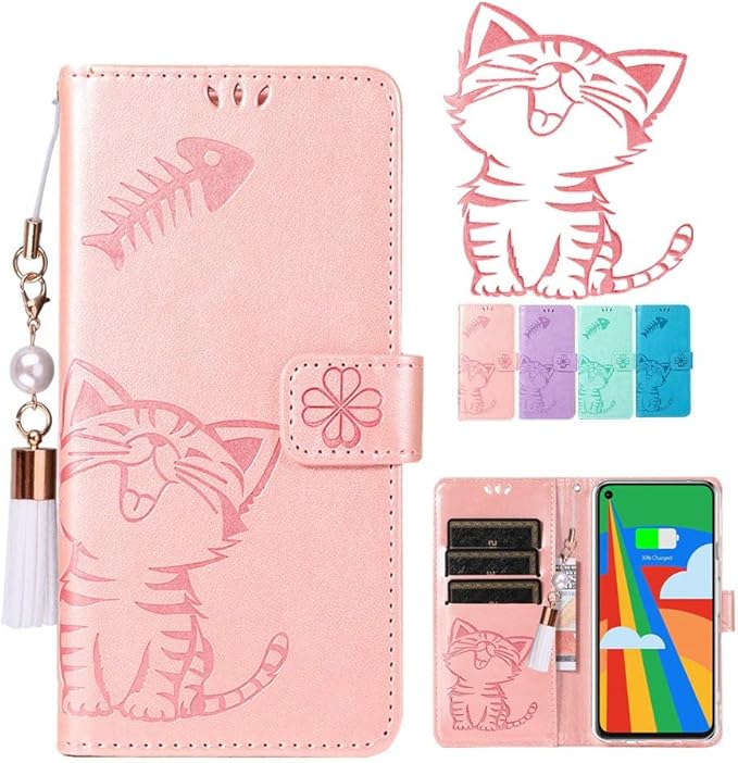 Google Pixel 4a 5G ケース 手帳型 FASY 6.2インチ グーグル ピクセル4a 5g Pixel4a (5G) スマホケース Pixel4a5G ケース 5G対応 ソフトバンク 手帳型ケース 財布型 薄型 かわいい 手帳 大人 女子 おしゃれ スタンド icカード レザー 耐衝撃 革 可愛い 透明 クリア ネコ ねこ 猫柄 TPU スマホカバー case ピンクゴールド | KAZESHOP