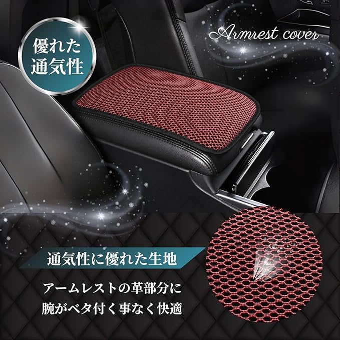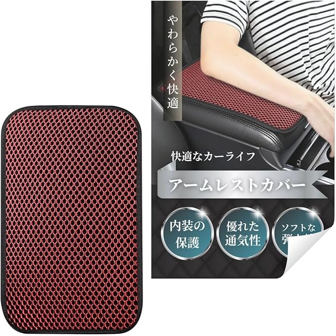 【Aleba117】車 アームレスト カバー クッション 肘置き ひじ掛け センターコンソール ヤリスクロス ノートe12 デリカd5 ハイゼット Nbox スイフト 軽自動車汎用 (レッド) | KAZESHOP