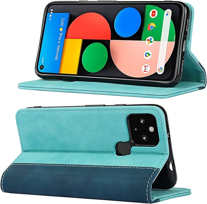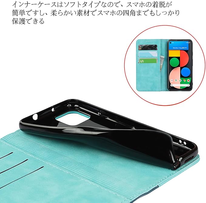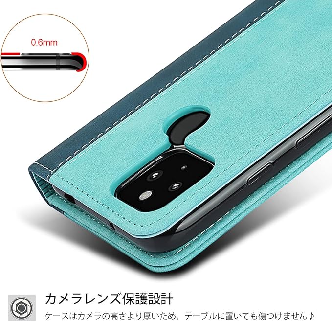 Google pixel 4a 5G ケース 手帳型 【5Gモデル対応】 pixel4a 5G ケース ピクセル 4a 5G カバー グーグル pixel4a5G カバー SoftBank SIMフリー 全対応 ピクセル4a 5G 手帳 適用 case 【iCoverCase】 合成レザー 内蔵マグネット スマホケース ケース 手帳型 携帯カバー スタンド機能 落ち着いた色 2色組合せ レトロ ネイビー ターコイズ | KAZESHOP