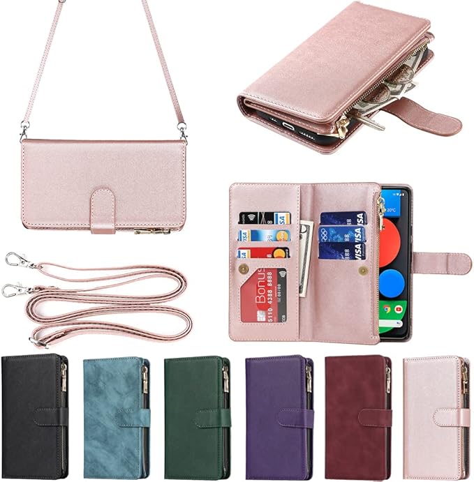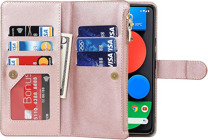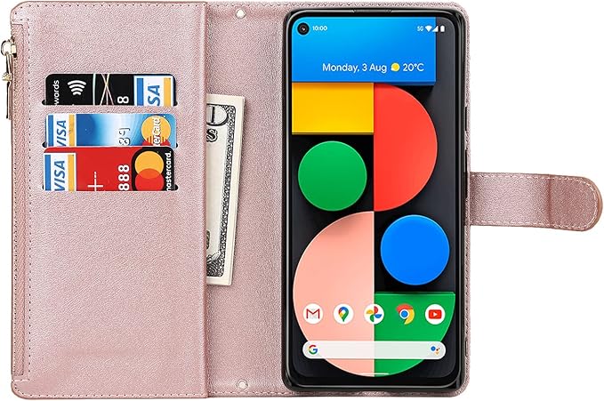 Eastwave for Google Pixel 5A 5G ケース for google pixel5a 5g 縄掛けケース 手帳型 財布型 ICカード コインポケット ストラップ付き カード 収納 小銭入れ ファスナーポケット付き PUレザー 6色ピンク | KAZESHOP