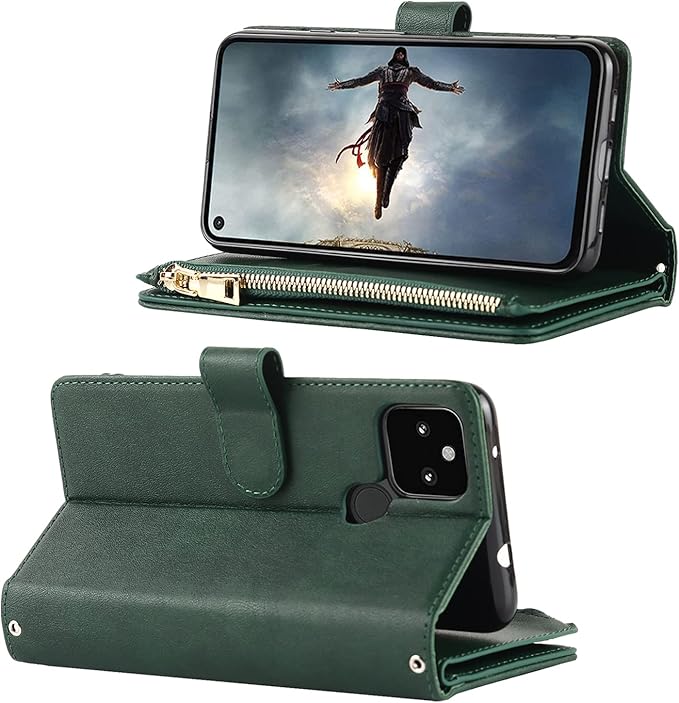 Eastwave for Google Pixel 5A 5G ケース for google pixel5a 5g 縄掛けケース 手帳型 財布型 ICカード コインポケット ストラップ付き カード 収納 小銭入れ ファスナーポケット付き PUレザー 6色グリーン | KAZESHOP