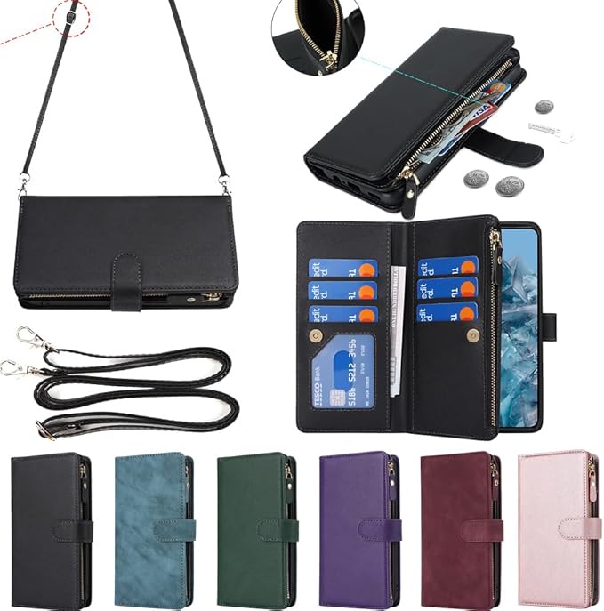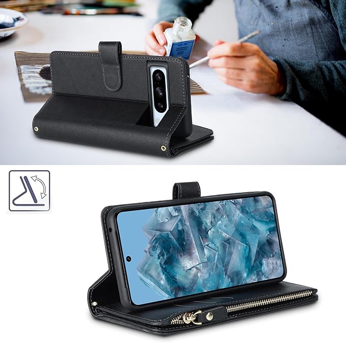 Eastwave for Google Pixel 8 Pro ケース for pixel 8pro 縄掛けケース for Google Pixel8 Pro 手帳型 財布型 ICカード コインポケット ストラップ付き カード 収納 小銭入れ ファスナーポケット付き PUレザー 6色 ブラック | KAZESHOP