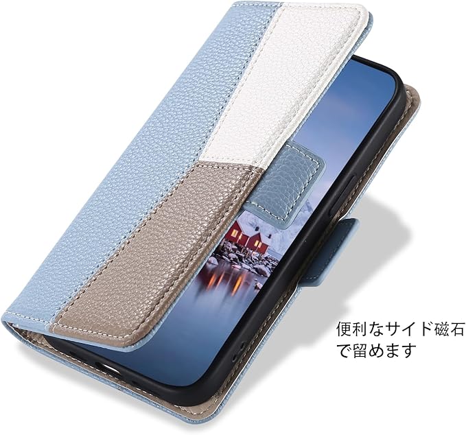 【ストラップ付き】ストラップ付き、持ち運びが便利でアクセサリーとしてもオススメです。さらに、使いやすいために、左上に金具と左下にストラップ穴がついています。好きなストラップをつけられます。【マグネット式】さらに、マグネットは内臓に配置され、磁気カードに影響がほとんどありません。カバーの開閉は便利で片手で操作可能です。 【スタンド機能】スマホ横置きでスタンド機能も付き、好きな角度を調節できて、両手が解放され、通勤・通学などの移動、新幹線や飛行機での長期距離移動など、お好みの角度で動画視聴などを楽しめます。