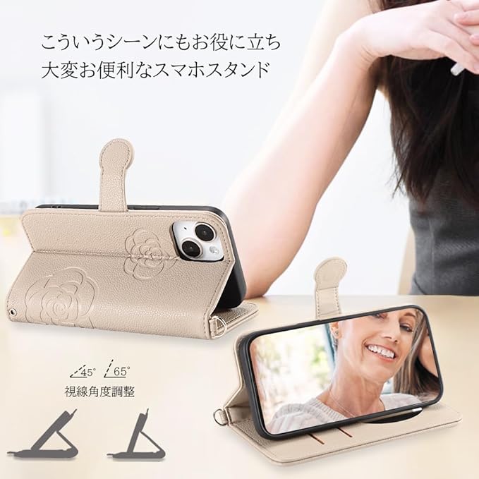 Google Pixel 8/グーグルピクセル8すべてのモデル対応。高品質の合皮レザーにシンプルなお花柄(カメリア)を型押し、シンプルなデザインに大人っぽいお洒落さを味わいます。さらに本体に揃うタッセルチャームを装着しております。各シーンに合わせて簡単に取り外します。肩掛けストラップ用穴と金具を搭載、ストラップ、キーホルダーやハンドストラップ(本製品ストラップが含めいません)も自由に付けます。