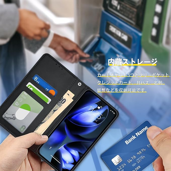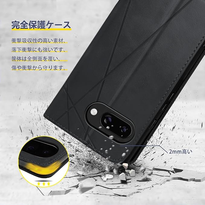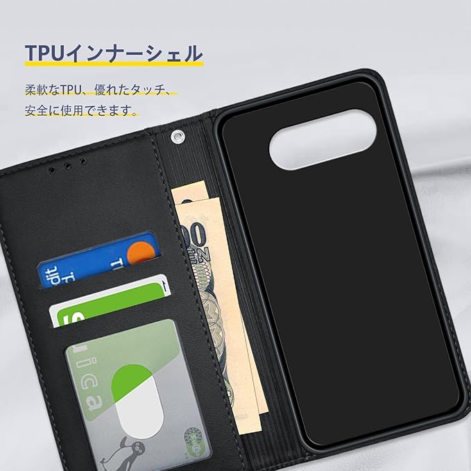 For Google Pixel 9a 用 ケース 手帳型 カード収納 スタンド機能 ピクセル9a 用の スマホケース 財布型 カード 耐衝撃 ストラップホール レザー 携帯カバー 便利 多機能 コイン収納 落下保護 耐摩擦(ブラック) | KAZESHOP