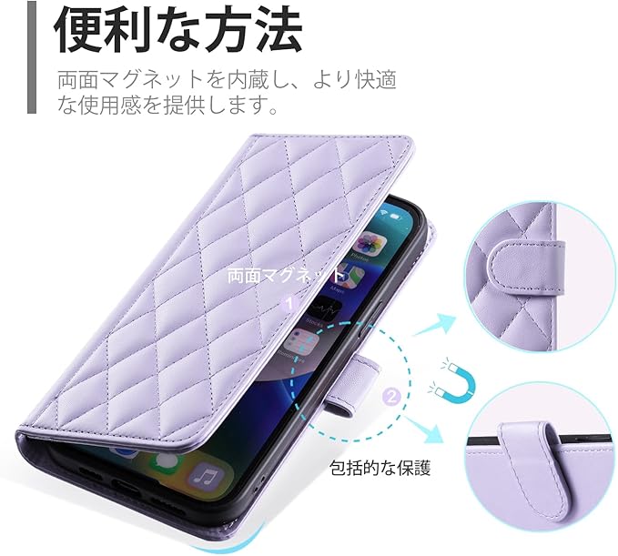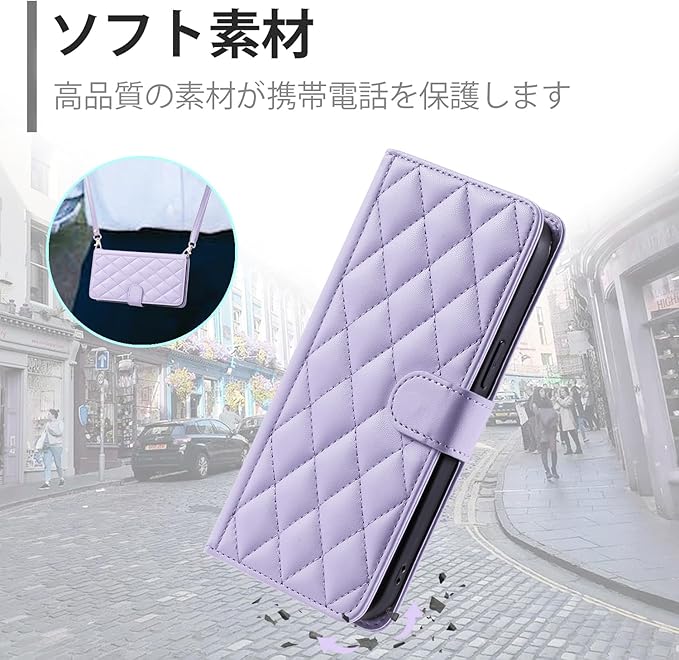 FOR pixel 9a ケース google pixel 9a ケース 手帳型 おしゃれ ストラップ付き スタンド機能 カード収納 軽量 薄型 耐衝撃 高級PUレザー 滑り防止 財布型 内蔵マグネット 開閉式 チェック柄 上質 耐摩擦 マグネット式 肩掛け 斜め掛けーパープル | KAZESHOP