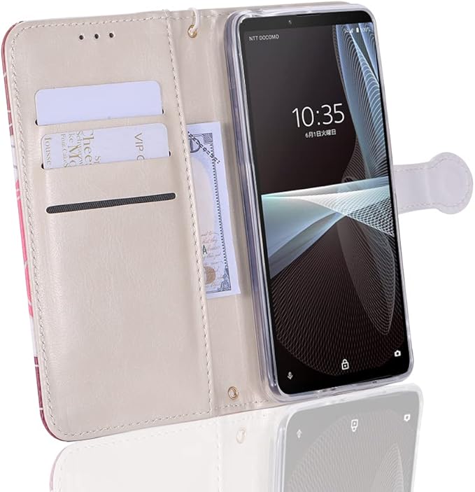 【実用性】1.カードポケットと予備ポケットがあり定期券や名刺、小銭などを収納できます;2.スタンド機能付きで横置気にも対応でき、動画鑑賞や読書などに最適;3.ケースに装着したままで、充電やボタンやイヤホン挿すなど全ての操作が自由に使えます;