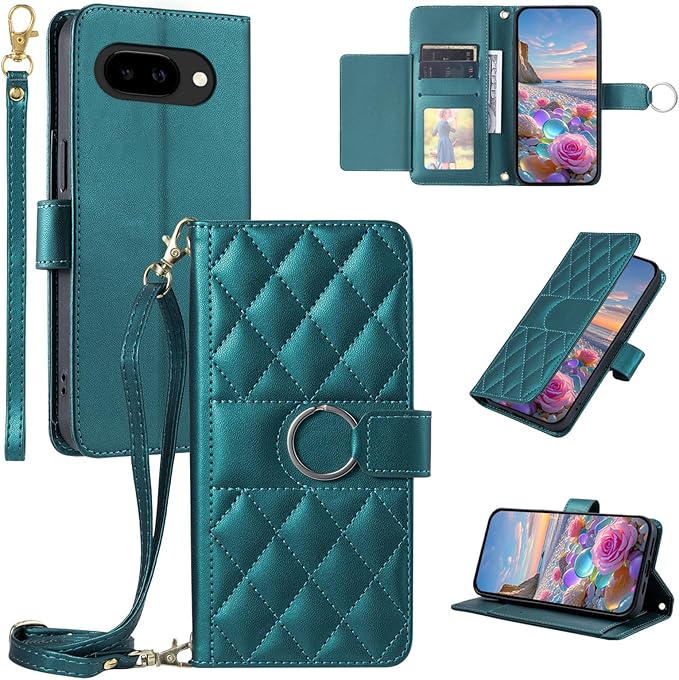 の google pixel 9a ケース 手帳型 スマホカバー グーグルピクセル9a スタンド機能 ピクセル9a ケース手帳型 ショルダー 肩掛け pixel9a ケース カードケース キルティング 財布型 カード収納 耐衝撃 おしゃれ - ダークグリーン | KAZESHOP