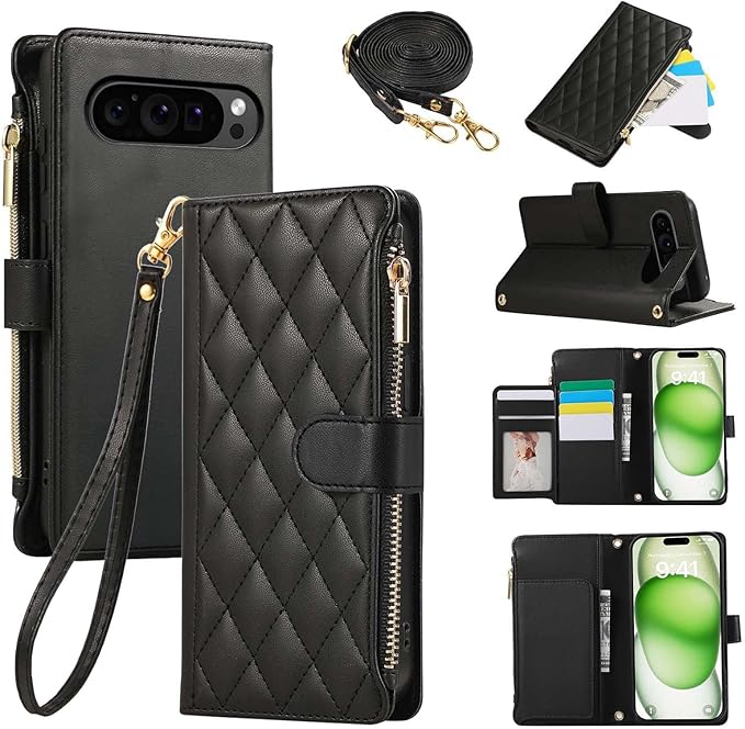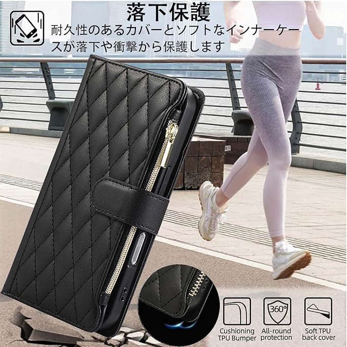 For Google Pixel9 / Pixel 9 Pro ケース 手帳型 Pixel10 / 10Pro ケース ショルダー Googleピクセル9 カード収納 財布型 スマホケース グーグルピクセル9 携帯ケース ファスナー ピクセル9プロ 肩掛け ぐーくるぴくせる9ケース スタンド機能 小銭入れ RFID 耐衝撃 おしゃれ ピクセル10 カバー - ブラック | KAZESHOP
